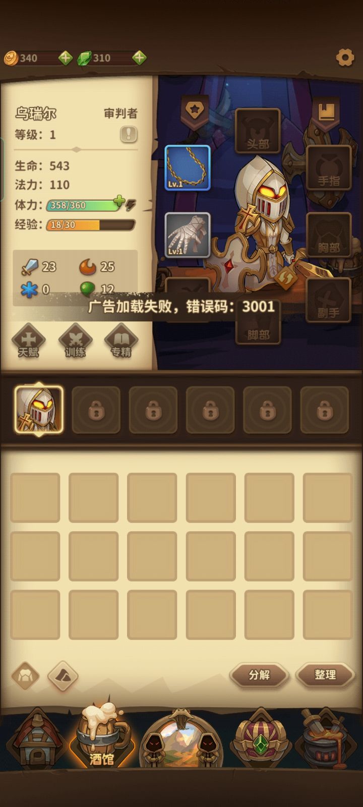 广告很多装备太复杂,没有角色限制,也没有角色提示,特别是套装,必须看套装增益里面的描述才知道这是哪个角色的套装,有的描述还不清晰,套装太多,有的一套就是两个、三个装备。强化只能强化装备,升级就作废物品栏太少,冒险栏位只有三个,英雄超出三个又要玩一遍建议:1,黑市每两小时自动刷新2,黑市增加装备以外的其他物品3、转盘增加体力4、刷梦境之塔不消耗体力,或者改为离线也可以刷5、每天增加送15分钟极速刷6、神话装备可自动升级7、梦境之塔,无尽深渊可以选择多个英雄暂时给这么多建议