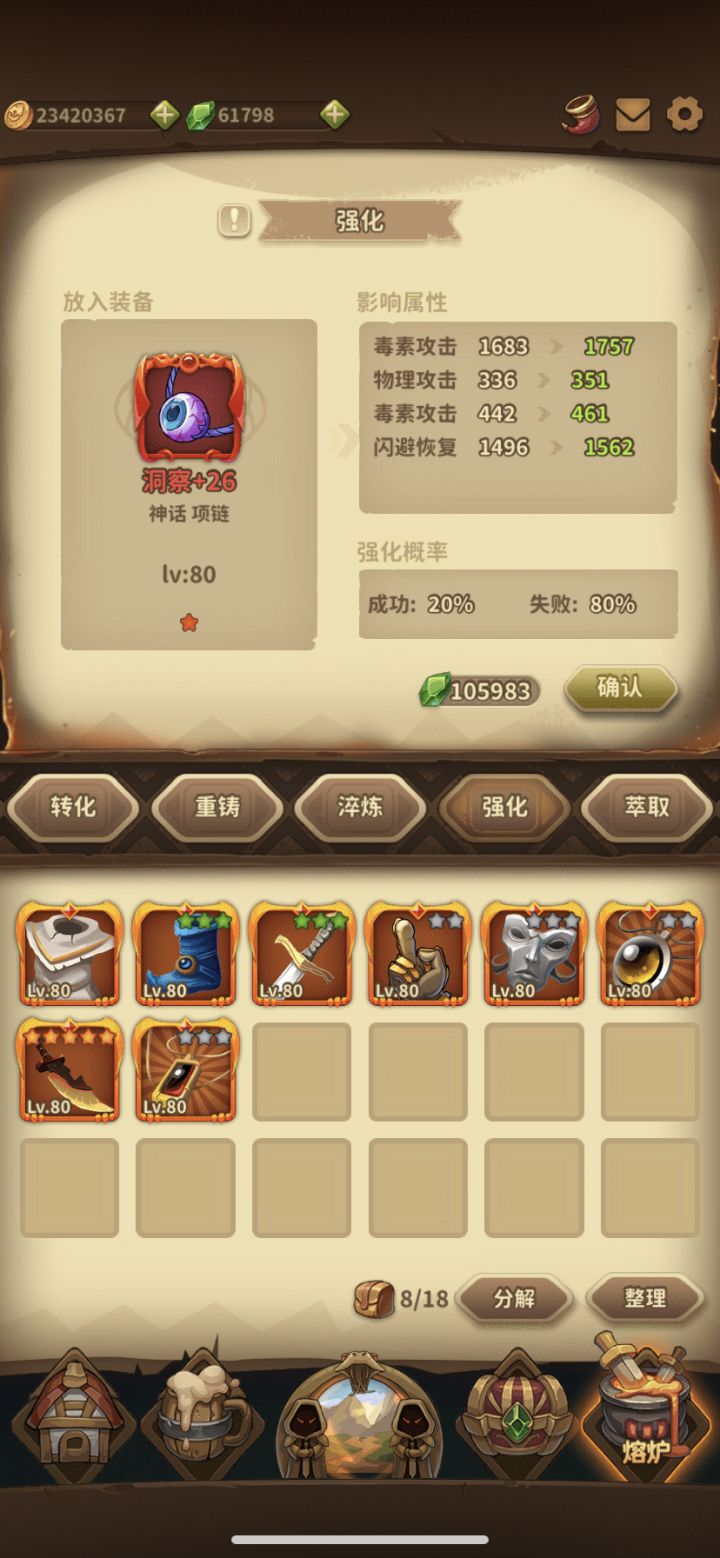 他妈的80%失败几率怎么强化?来来来你强个我看看,强到27就变成90%怎么玩,看广告都不行,一下掉回去,又白强化了,玩呢?啊?