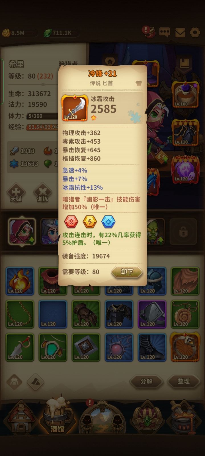 第7天,梦塔955层,被鱼人卡住了,已经没刷新次数了,有点遗憾不能1000层。然后强化怼到25以上,巫术师刷了一波巅峰等级和训练到装备需求160,过了那个鱼人,又卡鱼人,唉放弃了,等明天了
