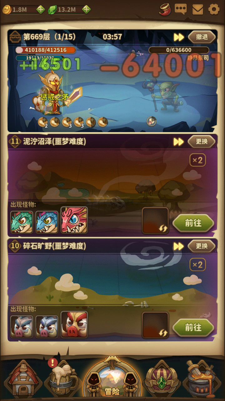 一个技能一个怪,主堆暴击和护盾,现在不到700层基本护盾都打不掉。不知道这个套子能打到多少层,目前来看基本什么怪都无压力