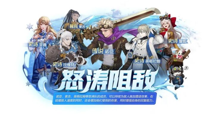 各位冒险家日安,在诺亚星球上有水、火、风、雷、光、暗六种元素构成,而掌握着这些元素之力的人便成为了诺亚星球中强者,守护着星球的和平。其中水元素被称为怒涛,一起来欣赏下“怒涛队”成员的风采吧!水元素小队-怒涛 怒涛队员:诺亚、索吉、英格拉姆、托维特、菲雅、詹妮怒涛队伍特点:怒涛队的减速效果和冰冻效果,可以大幅降低敌人的活动频率,持续的“霜语”和“冰冻”可以为输出型幻灵提供稳定的增伤效果。 幻