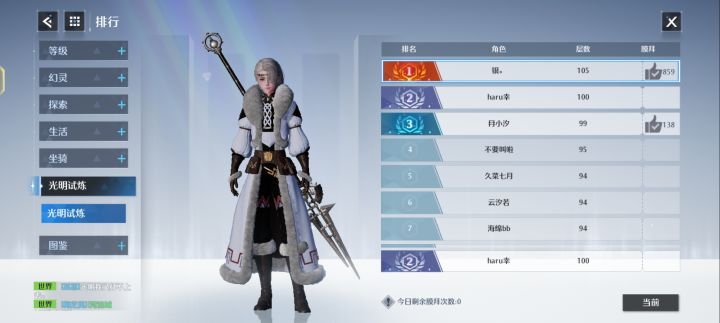 冒险家们日安,今天是由玩家@八荒为大家带来的光明试炼的攻略。让我们一起来看看吧~大家好,我是冒险家大神团的八荒,今天给大家带来的是光明试炼90-100层平民幻灵选择及输出手法。光明试炼90-100层相信卡了冒险家们有些时日,官方活动5月5日前通关100层的冒险家们会收到100抽的幸运好礼,眼瞅着时间将至,遂写此一篇攻略,供大家参看研究,希望对冒险家们有所帮助。文章总结光明试炼90—100层其