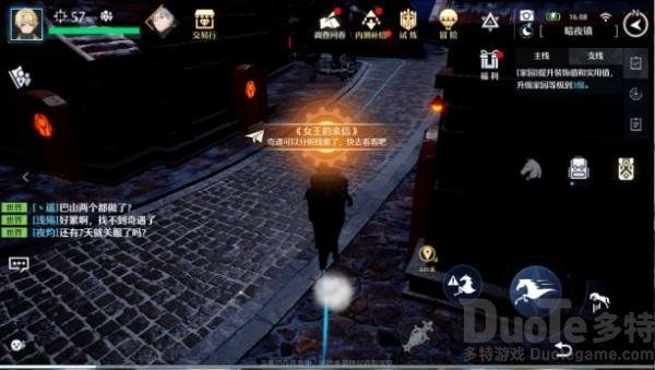 【女王的来信】1:触发方式:玩家来到暗夜镇主干道上触发奇遇任务。2:玩家在暗夜镇镇门口处打开破旧的箱子,可取得信件。3:玩家跟随任务指引将信件交还给蜜雪莉亚,前往落雪神殿击杀精英怪物:咕噜霜凛者,击杀后回复蜜雪莉亚,对话完成奇遇。二【无酒不欢】1:触发条件:玩家前往巴珊镇传送点即可触发奇遇。2:玩家前往巴珊镇酒馆中坐一会开始任务。3:玩家跟酒馆老板对完话后,去巴 珊镇找赫伯特取酒。4