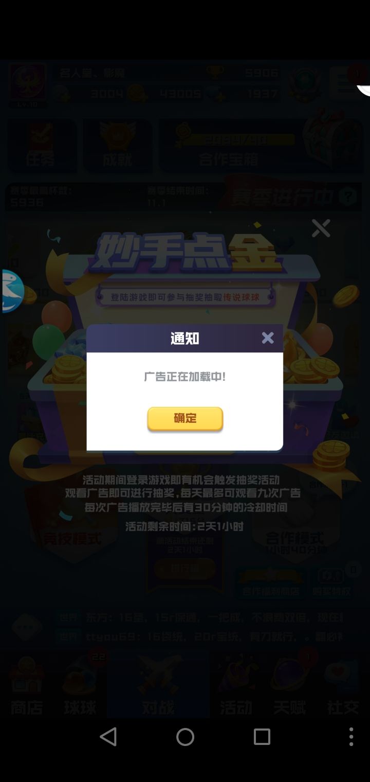 广告问题处理一下,有时一直正在加载中,玩随机竞技的时候如果只差一场就12胜,结果广告看不了机会没了还不亏死