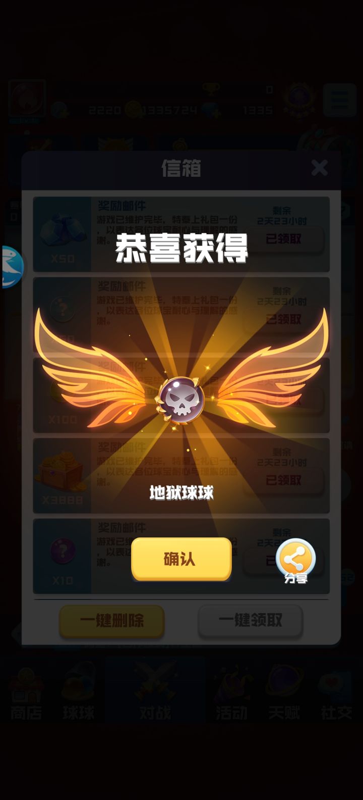 这个地狱有点意思。昨天7连,今天5连。不敢开了。200合作宝箱保底也是地狱。前些天。火拳10球9是。这两天。10有十是。通关宝箱出火拳地狱的概率占全部球的49.999%真实测评。建议把通关宝箱地狱火拳火炮给下架掉。重新整改一下出球爆率。平均化出球。不然整天通关宝箱还不如平均下来的999合作宝箱出球好。优化球球或者说,开到自己不想要的传说球。可以进行分解,10-20个碎片可以合成一个自