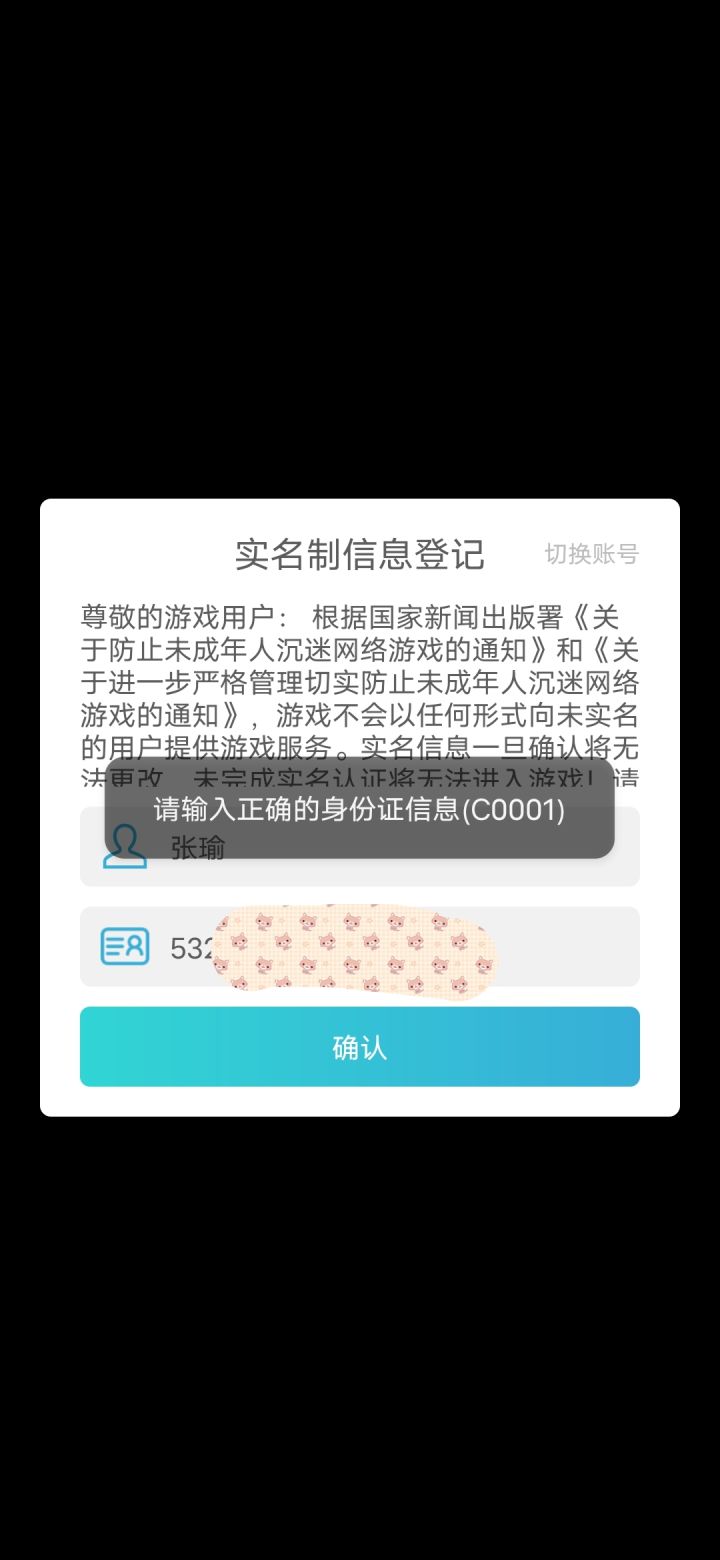 我手机登录上去要实名认证。然后我输名字和身份证号几十次了,都是这样,我已经成了年,这咋办?