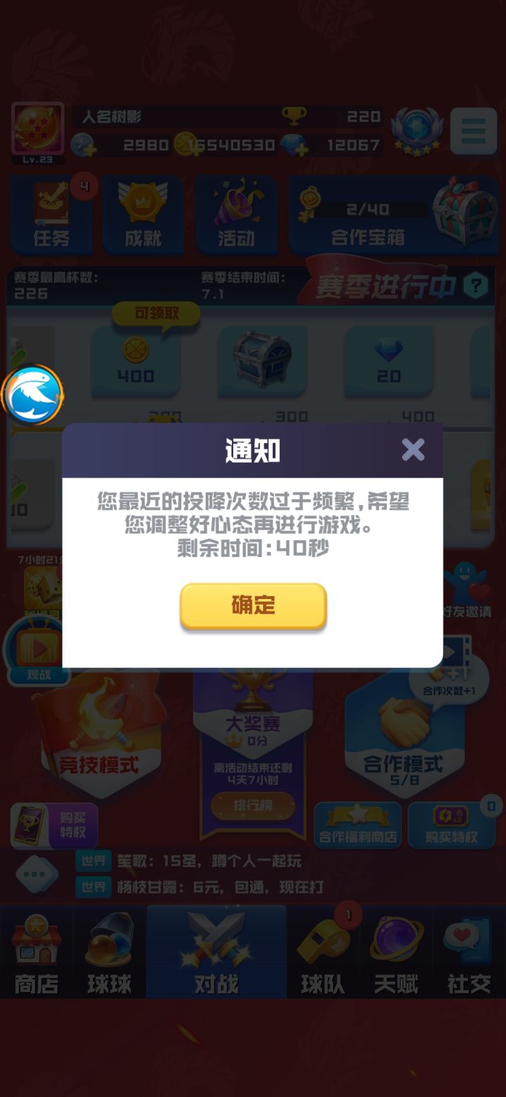 二觉召唤找个野人连击,我留球20回合合特么竟然退了,竟然看不懂我这操作,你告诉我这些**我能怎么办?聊天也聊不了,白瞎劳资双倍。