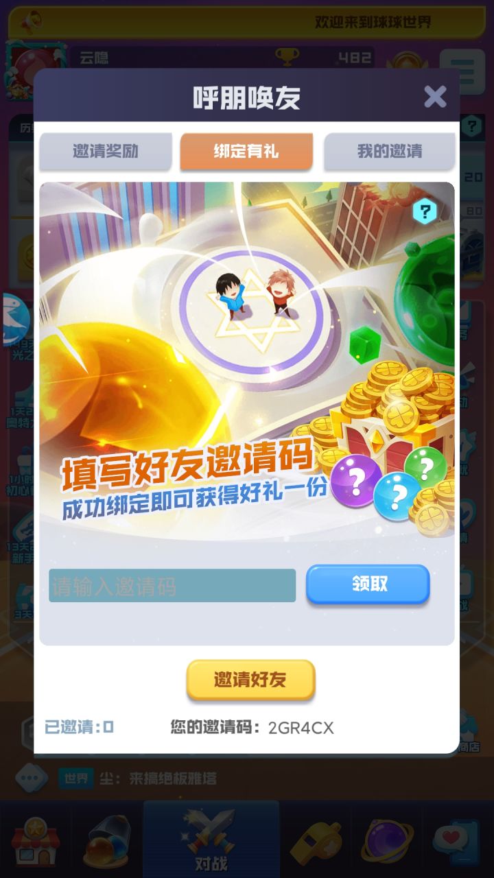 输入2U2L8T领取传说球球