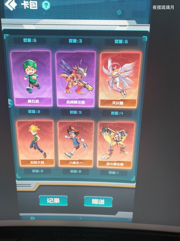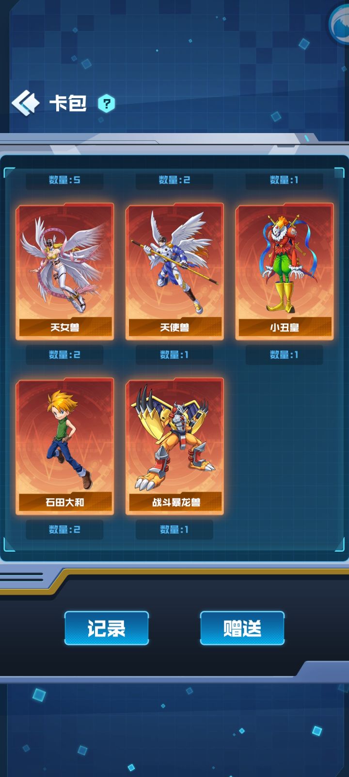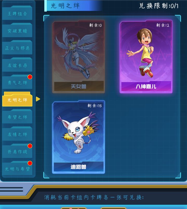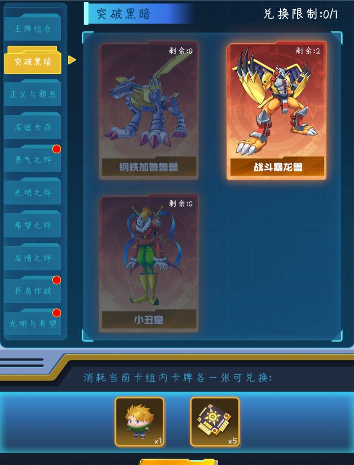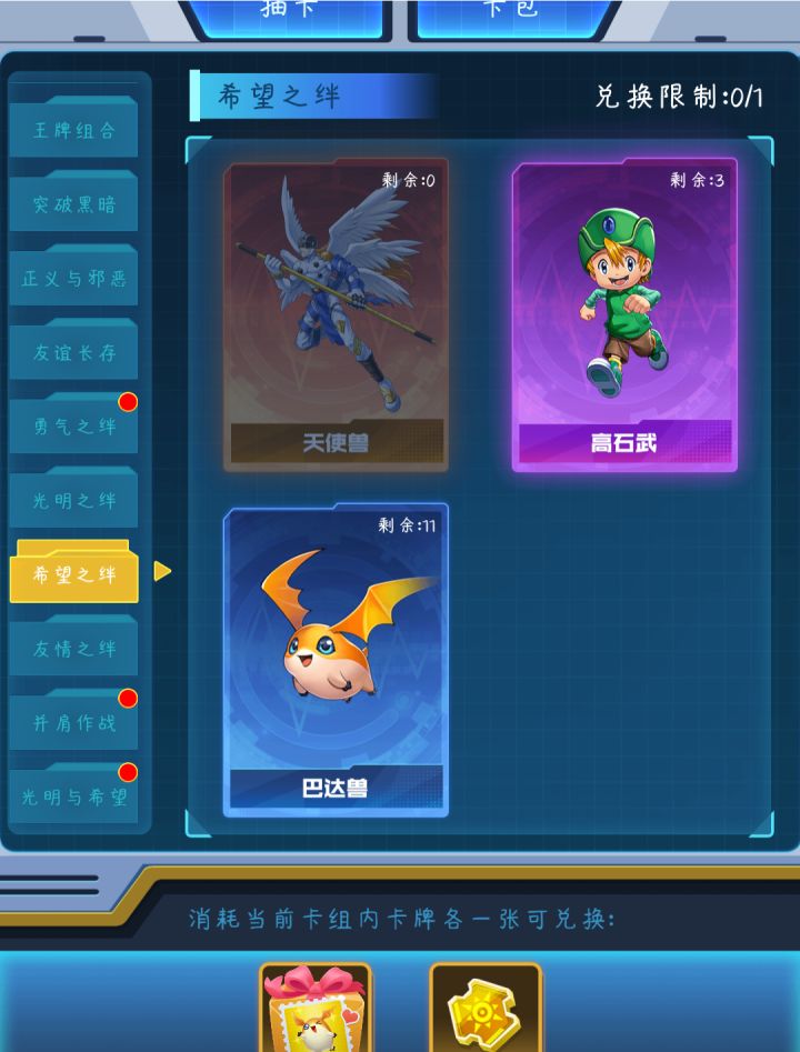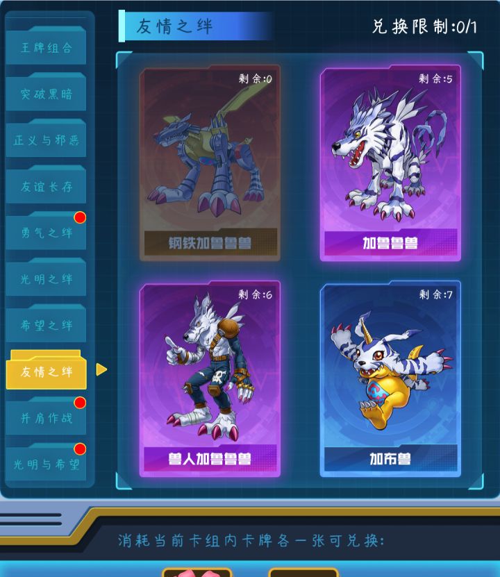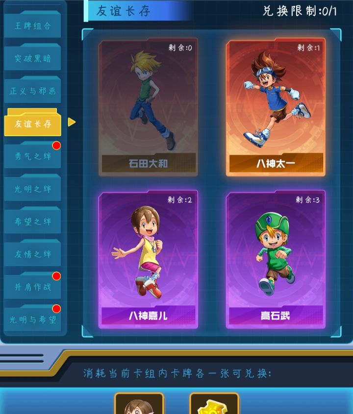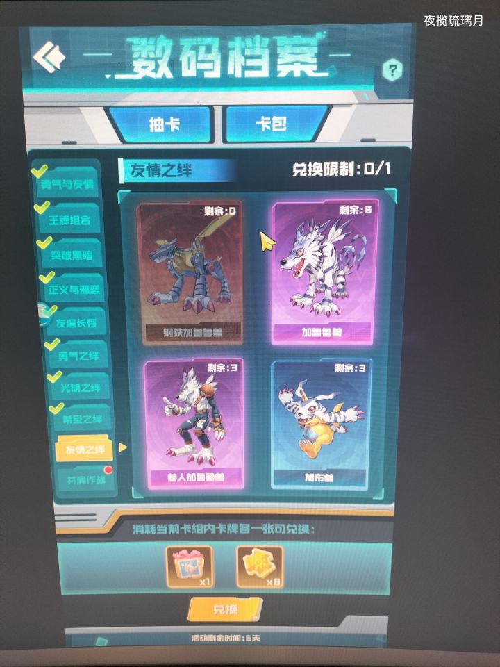 换一张钢铁加鲁鲁一张八神太一除一张石田大和和一张战斗暴龙兽保留外其余均可交换