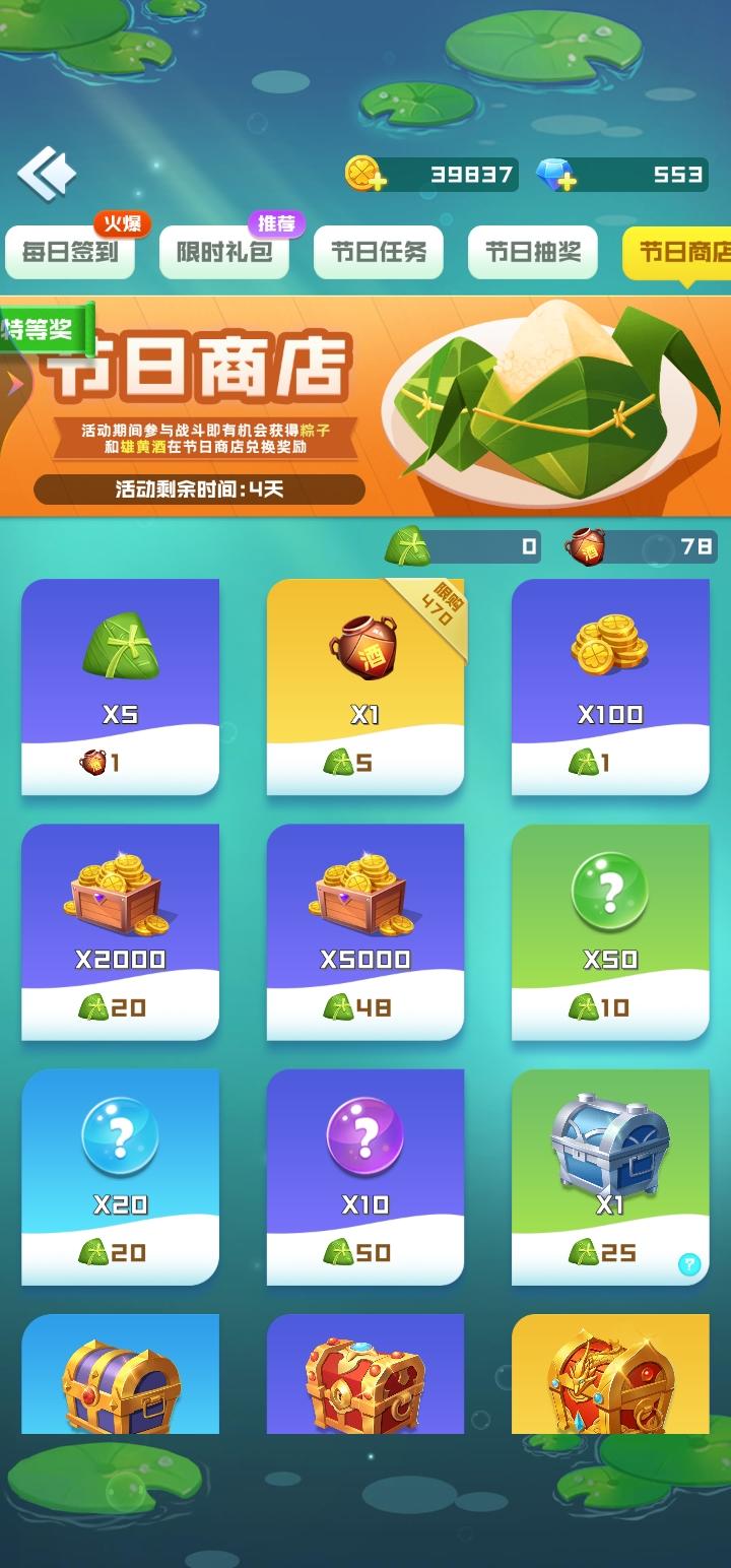 咱就是说,粽子活动真有人能七天换完4个超级自选吗。。。战斗一天大概上限30粽子(=6个雄黄酒)+4个雄黄酒。也就是10*7天,70个,每日任务4个雄黄酒*7=28,目标70个雄黄酒。满打满算。。。70+28+70,也才168个雄黄酒。。。。。这500上线兑换雄黄酒摆着逗我玩呢😂,天天拉满也才120超级自选+一个40雄黄酒的传说球。。。。