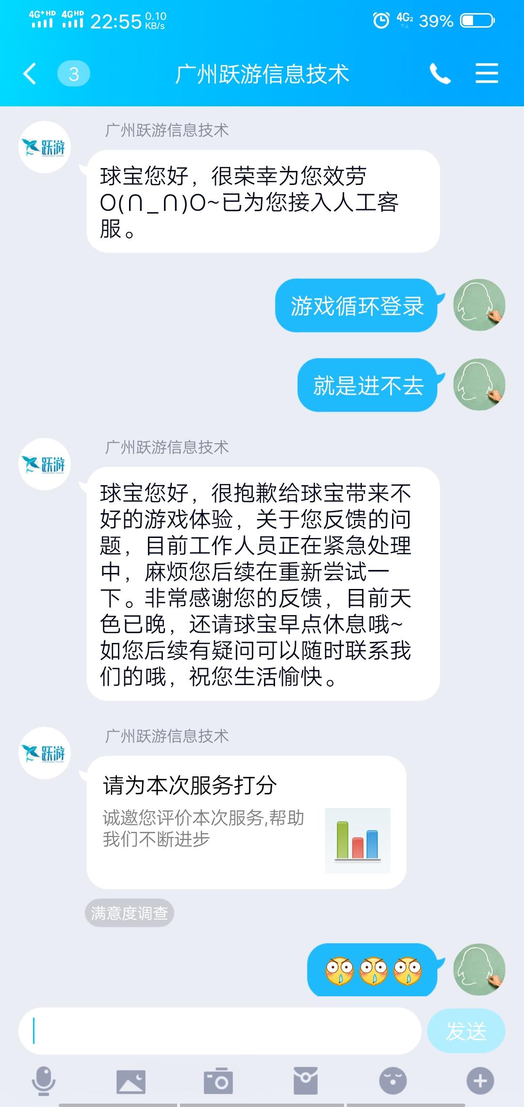 游戏客服真的无力吐槽,看截屏吧,第一时间看见信息转到人工,马上反应问题,立马杳无音讯