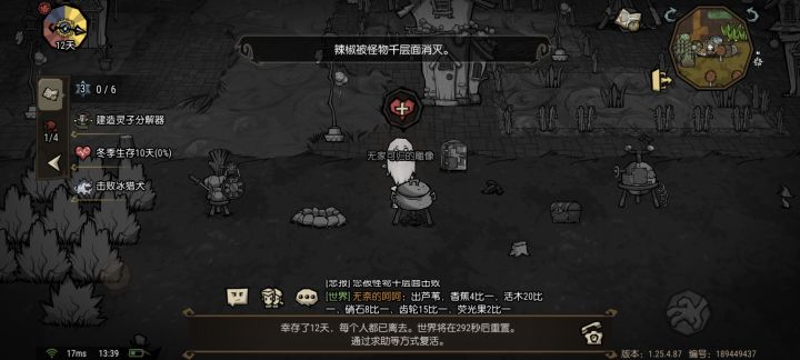 饥荒或者饥困荒野带我玩,你那边是一个人还是两个人或者是三个人的小团体都可以饥困荒野一起打boss,这游戏为什么家园升级任务是游戏流程,困难模式还带护盾🤓☝🏻,一个建家党轻轻的碎了。