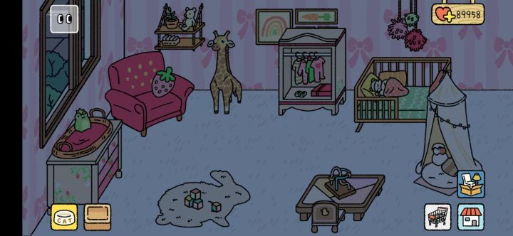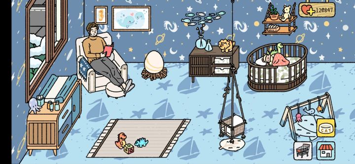 在这里和大家说一个Bug,国际服最开始除了客厅和育儿室什么也没有,一定要先去买买买,买到小爱心够开育儿室,然后打开育儿室后直接退出游戏重新进,随后就都有了。如果不想要育儿室,两个办法,1.等四天到一周。2.退出后重进🙃如果一直没有的话,只能开育儿室了。