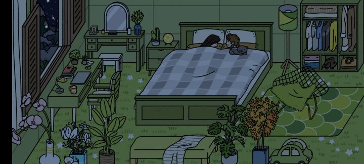 真的很喜欢这个慢悠悠的调子,小猫会时不时的跑到其他地方去了,主人可以在家等待另一半!我真的很喜欢细水长流的感情,有小动物从花园的洞洞里钻进来,还知道躲雨(哈哈哈哈)更多的就是每天上线总会惊喜在等着我~有一些小意见昂:1、就是能不能整点衣服,大冬天外面下暴雪,客厅门敞开着,人在里面穿在短袖一坐做了三小时…6; 2、两个人在一起的时间能不能多做点事啊👉👈我记得最清楚的一次,他们两个从早上7点多到下午