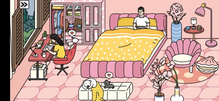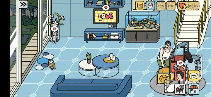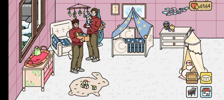 挺治愈的画风,不过有些行为不理解,半夜起来去上班,下午去上班,没有规律的吗,人物不能操作,一个动作就能维持一天,人物能自己操作行为就好了。还有想问问孩子怎么有啊,希望后期可以增加一个衣帽间,人物可以买衣服换衣服什么的,不然后面就很无聊了