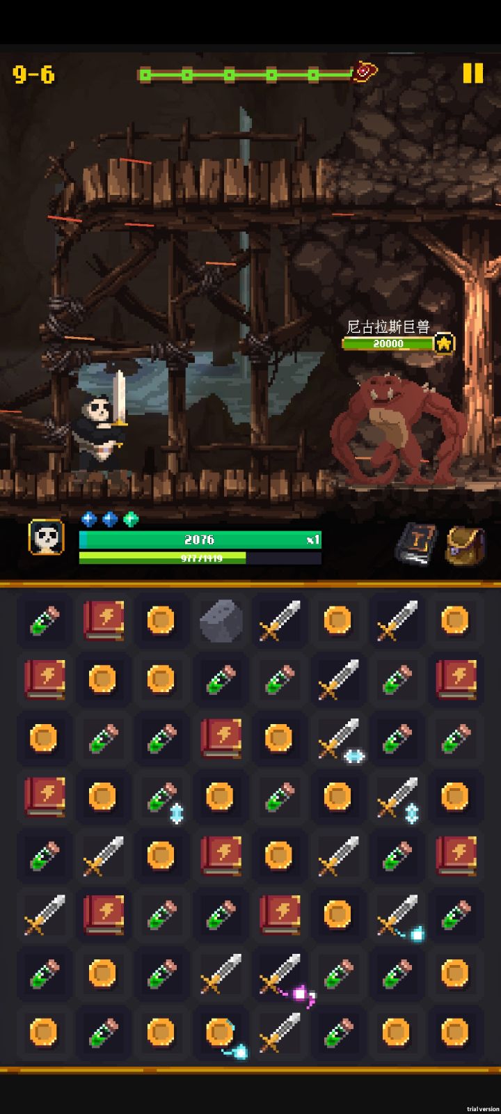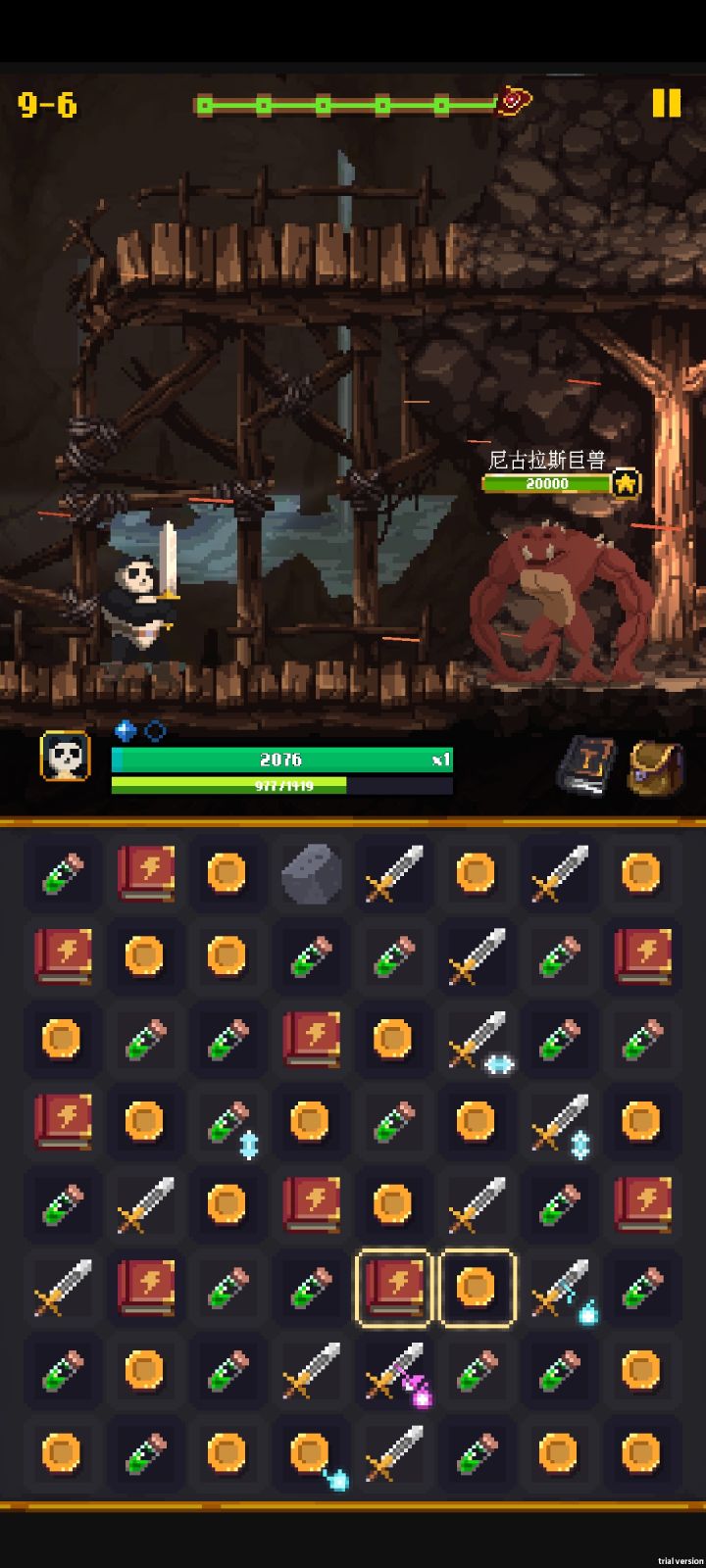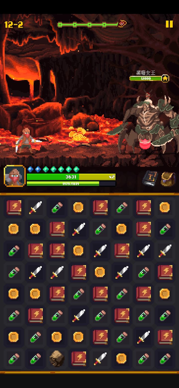 玩了一下午,游戏很好玩。刚开始有点懵,后面就明白了,推荐萌新先合下面的块,一次合成多的可以变成冒蓝火的,攒着那个到boss再用,最好是金币或者经验。这样全消的时候就会有一波剑的连斩,我现在最多只打出9连,移动格子的时候不一定非要连起来才能移动。每回合可以随意移动格子,可以自己看需求攒合成。卡4-6了可以去刷几波4-5换换装备,也可以卡经验,快升级的时候去打4-6的boss,这样到 boss的时