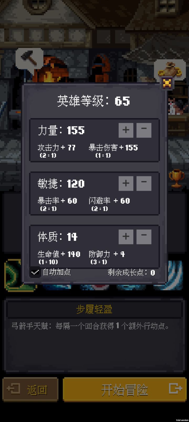 暂时发现的四个问题一个是弓箭手爆伤实际只有面板的一半(战士的爆伤应该是没问题的,其他几个职业练度太低了凹暴击比较麻烦没测)第二个是所有职业的 “自动加点” 是通用的,在任意一个职业取消或者勾选自动加点,其他所有职业都会同步,但是实际加点暂时不会变,直至升级后,会根据自动加点重新分配点数。第三个是加点数值有点问题,兽人的敏捷和闪避比例为4:1,实际为5:1兽人的体质和防御比例为3:1,实际