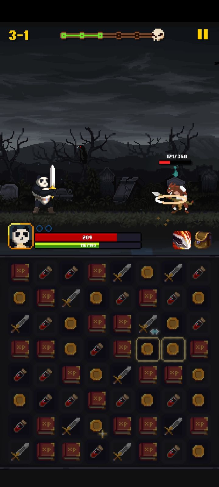 消了很多弓箭然后秒掉boss就卡在这个页面不动了了,还有这个英雄明明伤害够了结果怪死不掉还要打第二次才能死。