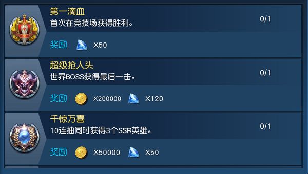 《奥特曼王者传奇》中玩家可能不经意闯过某个关卡或者挑战完某个副本,便会收到系统发来的提示,发现自己完成了某个成就,能够获得奖励,其实,这就是《奥特曼王者传奇》的成就系统。只要玩家完成成就系统里面设定的各种任务,就能获取丰厚的奖励,以这些资源来提升自身的战斗力。系统为玩家们设置了很多丰富的成就任务,玩家在游戏成长过程中的每一步都能享受到惊喜。成就系统成就任务主要提供金币和钻石的奖励,玩家完成任务达