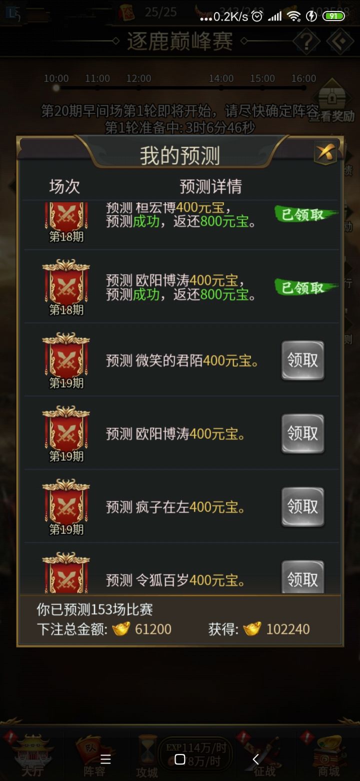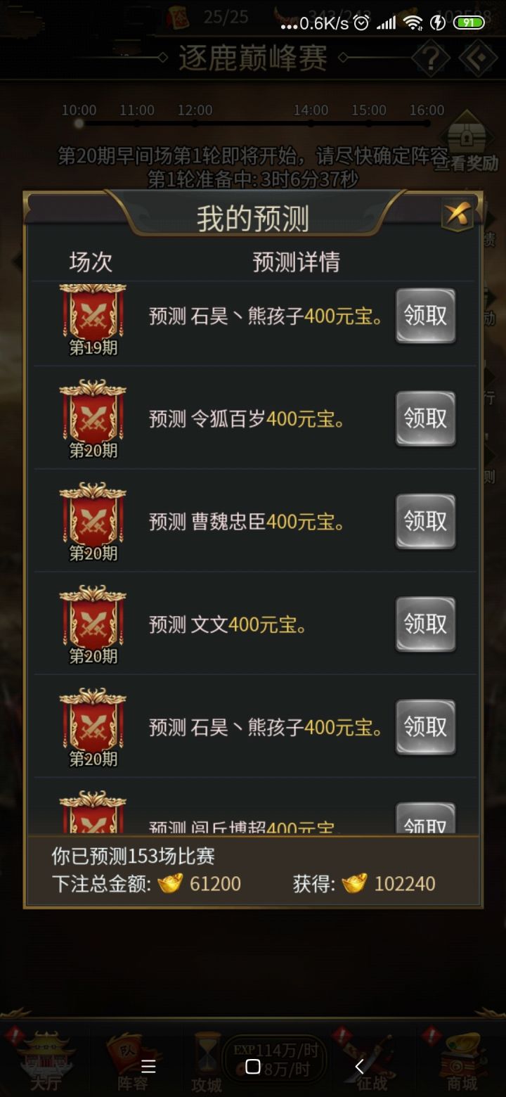 刚刚更新好,逐鹿天下昨天忘记领了,现在还是处于无法领取状态。还有现在明显是以“第几期”为关键字的升序排列,导致最新的预测都在底部。如果调整为以“第几期”为关键字降序排列,那么最新的预测是否就会置顶呢?当然还是非常感谢更新后,把之前没领的预测奖励都领回了。