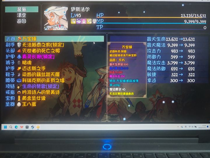 注:暗女最好不要开四阶基因锁。呼吸法:鲲鹏呼吸法(没有的话可以用九头鸟,根据法强灵活搭配,有时不用都可以)buff:强效保护秘药(女巫处买图纸,血量13000+可以不用),双倍爆率武器:万宝锤(爆率)副手:无法撼动之物(重要,40深渊出)头部:灭世者的死亡之帽(高额法攻,海姆冥界购买,非必须,由于这套出装法攻太高,可换成30深渊的权势之冠或海姆达尔之盔)护甲:真灵长袍(高额法攻,33级