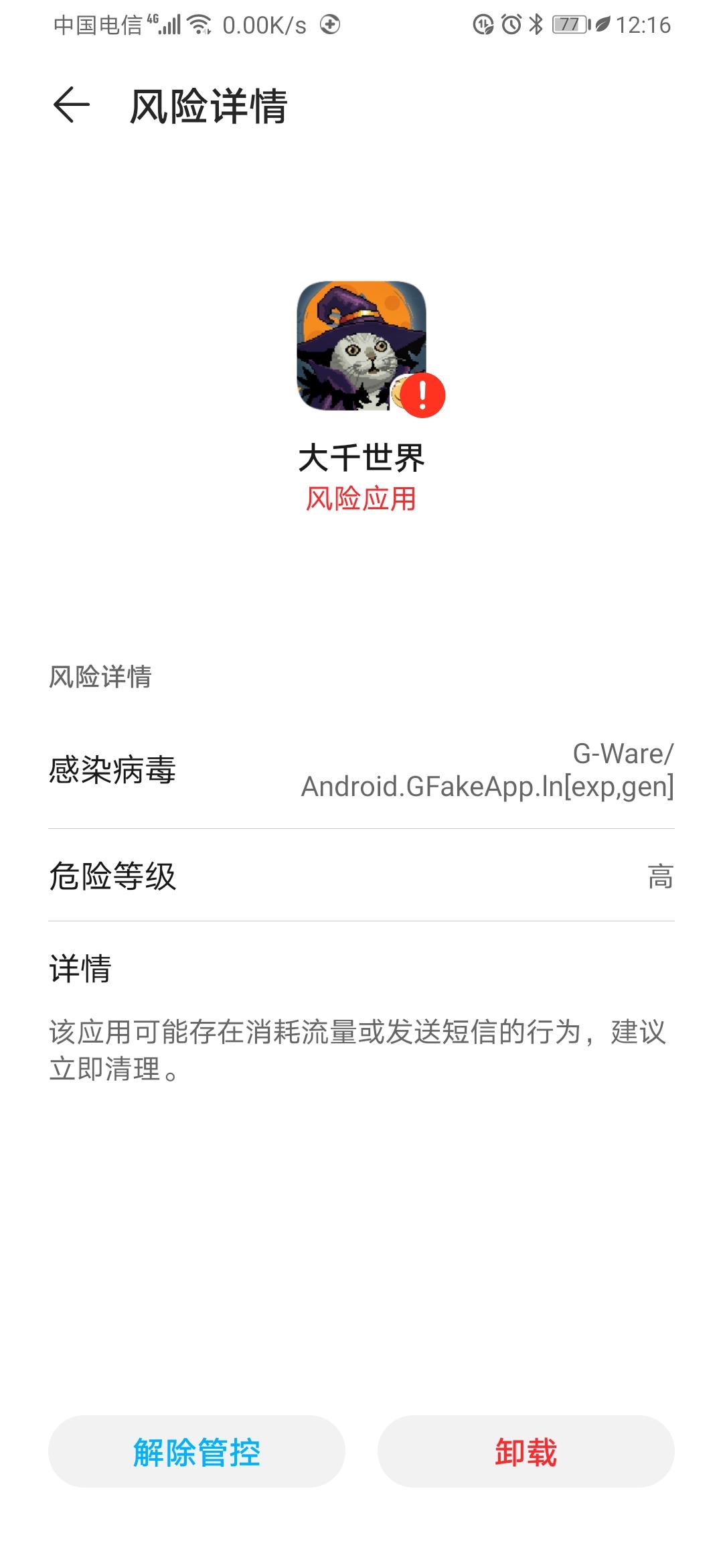 早上打开手机报错说感染病毒了,是什么情况,玩了几天了一直没问题,今天突然报错说感染病毒了。