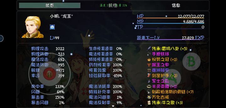 小明早就成圣46级了,然后最近那个掉级小明掉到41级……当时以为征集上来了就行了,结果了44级快到45级时,没伤害了,出现四阶基因锁,渡劫之后。封闭枷锁还在……可是,北丑南贤死马老人早就剧情到通天塔了……45级没到,进不去……😩😩😩,感觉陷入死胡同了。。。所以这号是废了吗?所有东西都给小明了,挺喜欢小明这个角色的。这个存档玩肝了500小时左右了。。。(如果有大佬知道解决方法,一定要告诉我,求求了!喜欢这个档而且现在也没有以前有时间去重新开始练号了…)