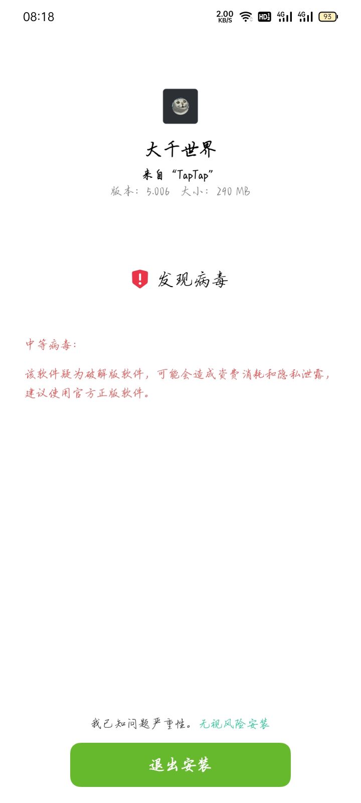 taptap下载的还会报毒?而且这游戏世界走路走两步卡一下