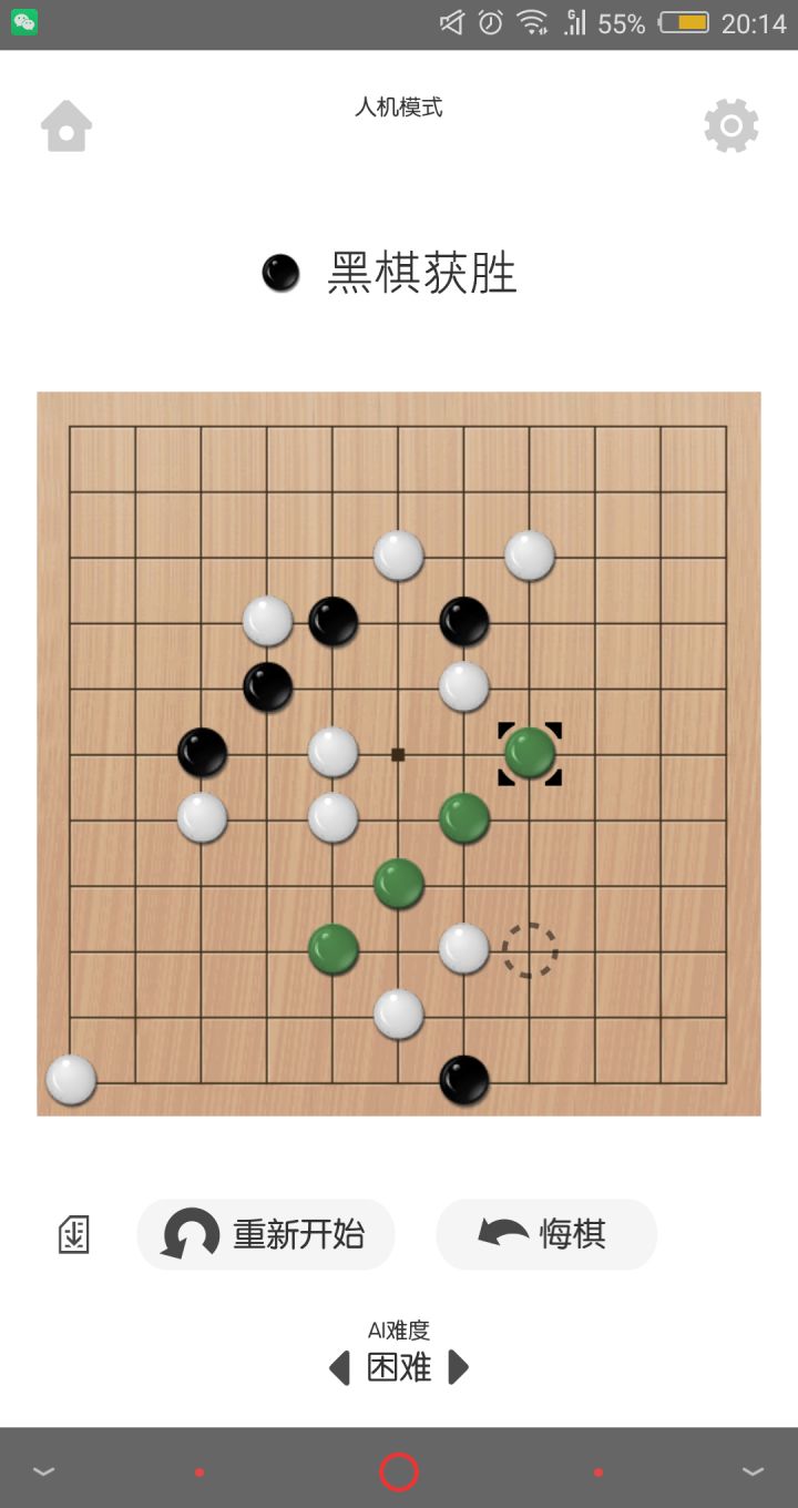 还有这个AI气急败坏吃我的子,但是我却吃不了它的,尝试悔棋让它把子还我,结果就成这样了