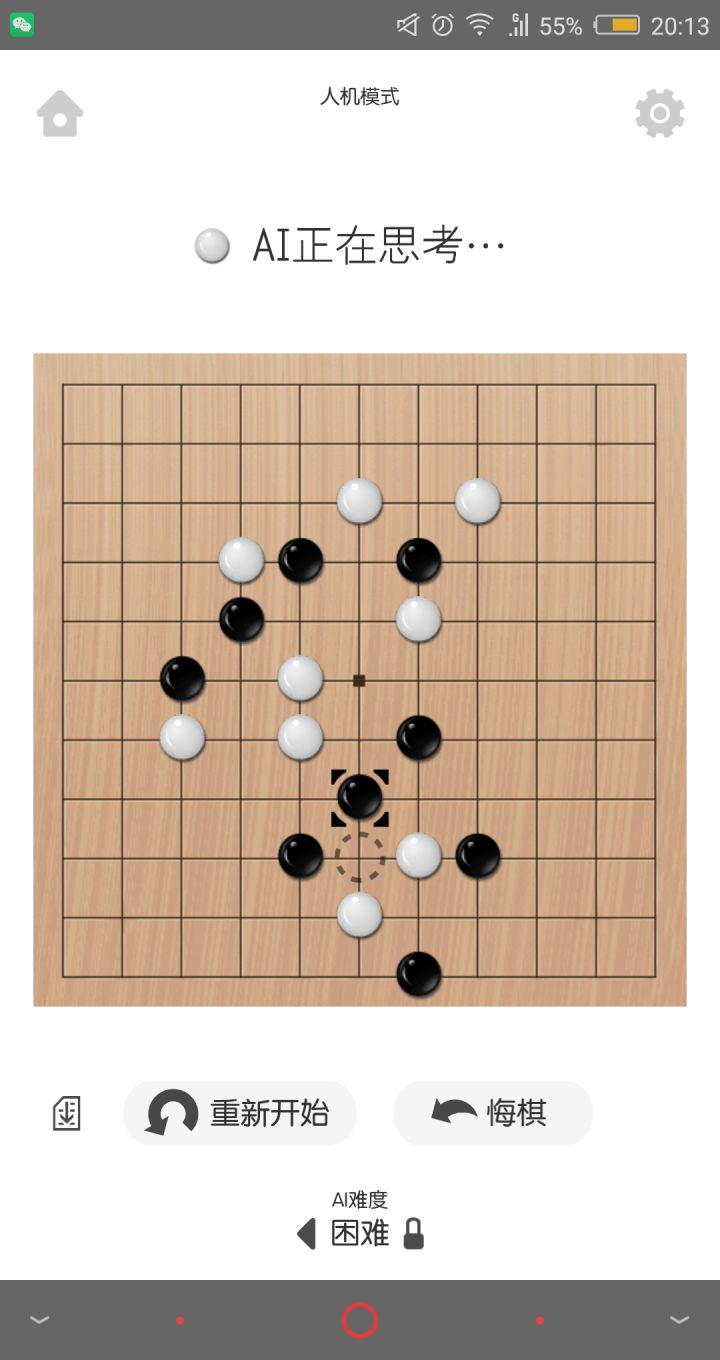 。。。。。。本来就时傻时不傻的,又出现三个回合不落子,后来改了下下法才算不一直傻。