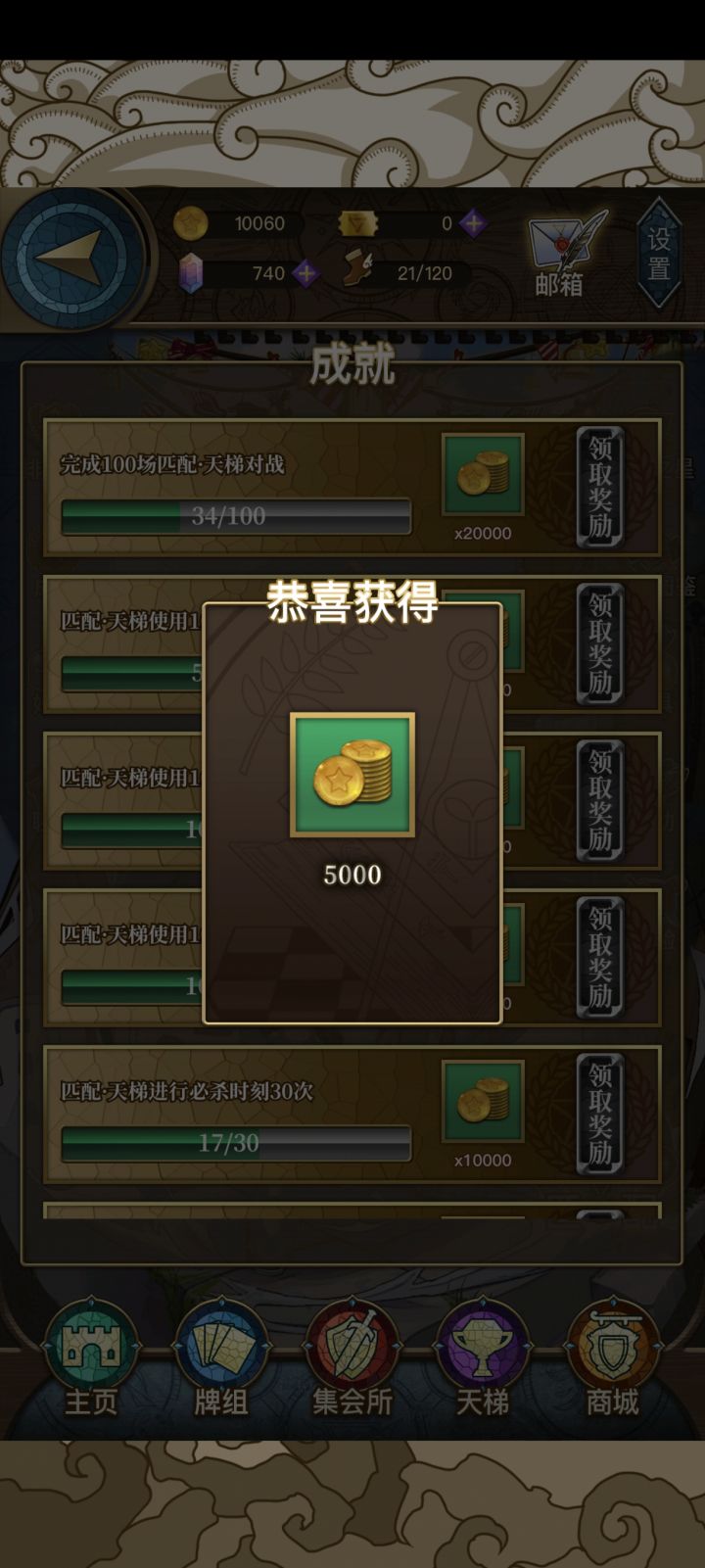 三个成就10000金币只给了我三个5000金币。。。求修复求补偿!还把我十抽的卡吞了!