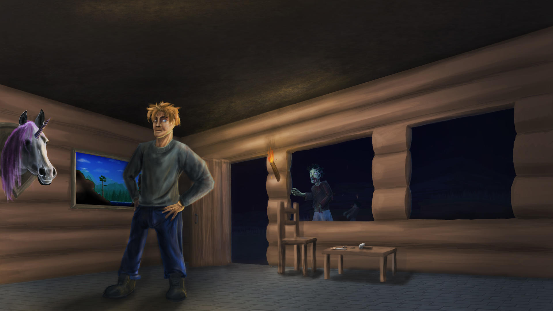 第一晚都如此相似,搭个火柴盒,不知道这个是怎么快速度过黑夜,幸好有只小鸟陪我🥺,还帮我打怪。然后我就开始探索这个地图,选的是旅途模式,然后走到地图边界遇到图二,给我整懵了,他的专属BGM还多带感,然后他就一直缠着我,再往下,又遇到好几个守卫,真是苦了我的小鸟,一直在打他们,我就继续探索,一开始不知怎么破局,结果用了那个镜子回出生点,就甩掉了。(一直没掉血是因为开了上帝视角吗🤔)游玩差异:①操作