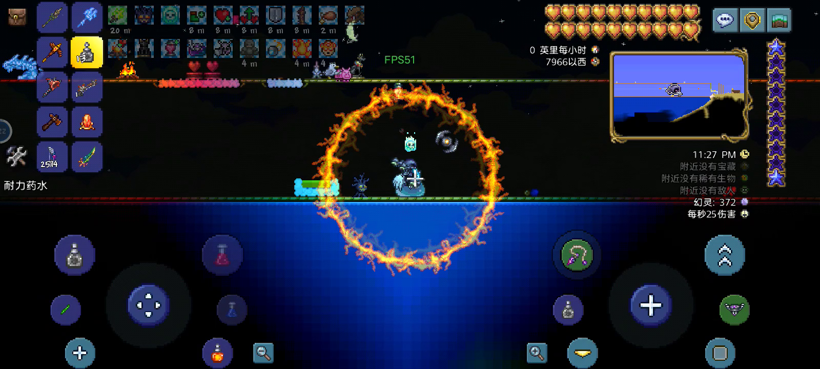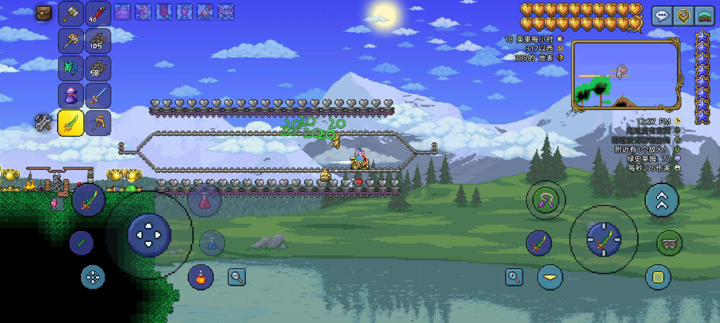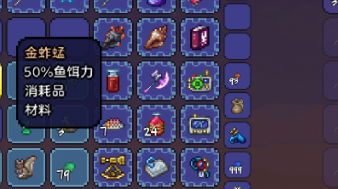 目前只有机械钓竿(机械师那卖的),游商来了必看都没见到那把钓竿,做渔夫任务痛并快乐着。 全长1350+个坐标,铺一层土就够了,然后用绿化手杖染绿,再用花靴种花,最后用金捕虫网清草。 每趟大概捕获蠕虫0~2只,蚂蚱4~9只😞。 最后运气好爆了个金蚂蚱(50%渔力)。 翻维基上说这个以前是个bug,所以现在削成这样而且步骤繁琐。 根据目测(=自个儿认为),感觉近战攻速不能显著提高捕虫网的挥动速度,水蜡烛对蠕虫、蚂蚱的爆率没有影响。