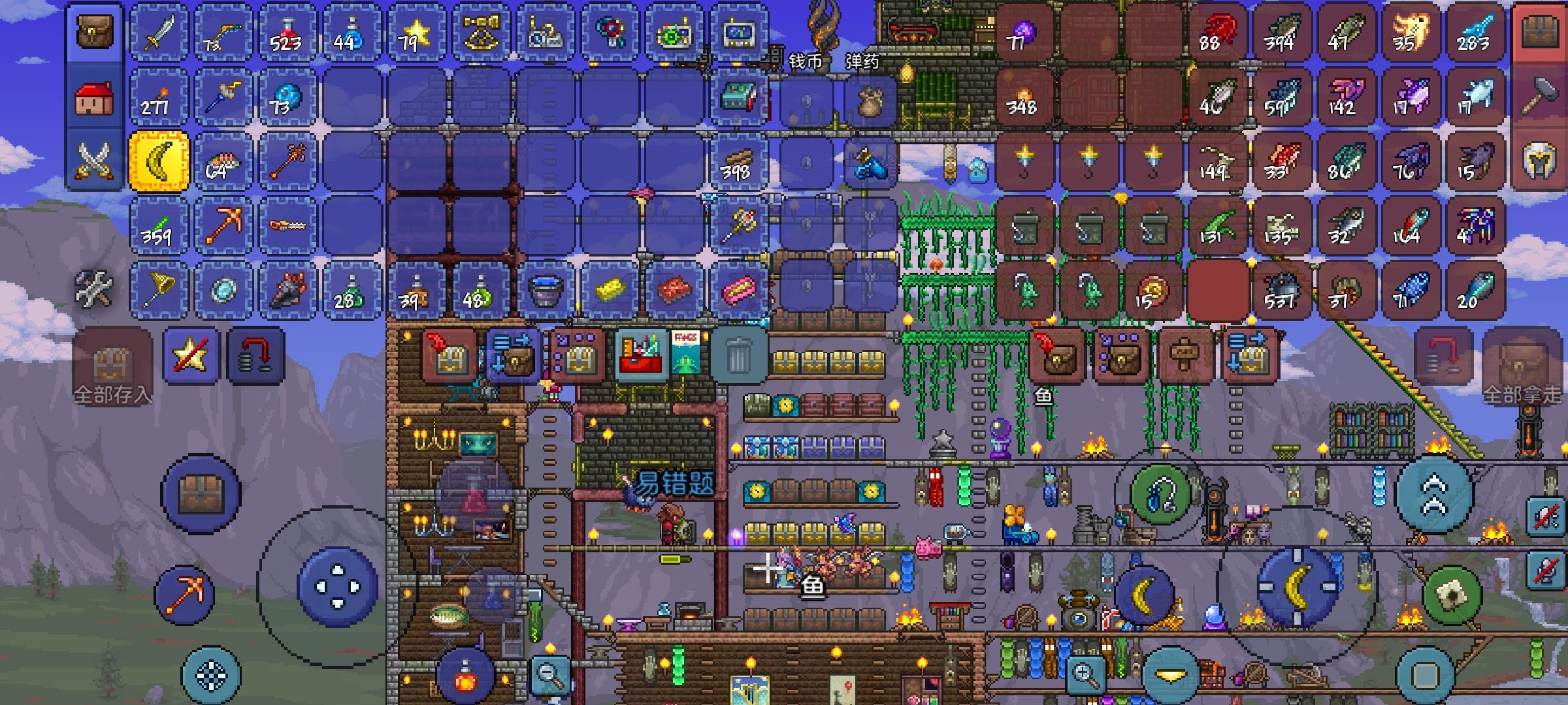 看wiki说大佬的模块可以一张海盗图打十个海盗船,我自己拿原来刷血月的小房子改了一下,发现只能打五个船,但一时找不到能刷十个船的模块,所以把自己的发出来,求大佬指点一下或者好心告诉我答案 刚肉后还没打三王,改建筑时不小心被幽灵打死了 在原来的基础上加了格挡和通道,底下半砖推送平台,中间挖了长隧道但我忘记了带着金币的怪不论跑多远都不会消失…这个有点失败…最后清点战利品,但不知道为什么格外的少