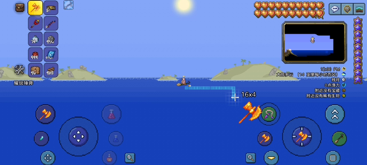 昨天晚上由于开了好多暗影箱都没有地狱之翼弓,然后就嗑了一些buff,用迷你鲨把肉山干掉了,普通的