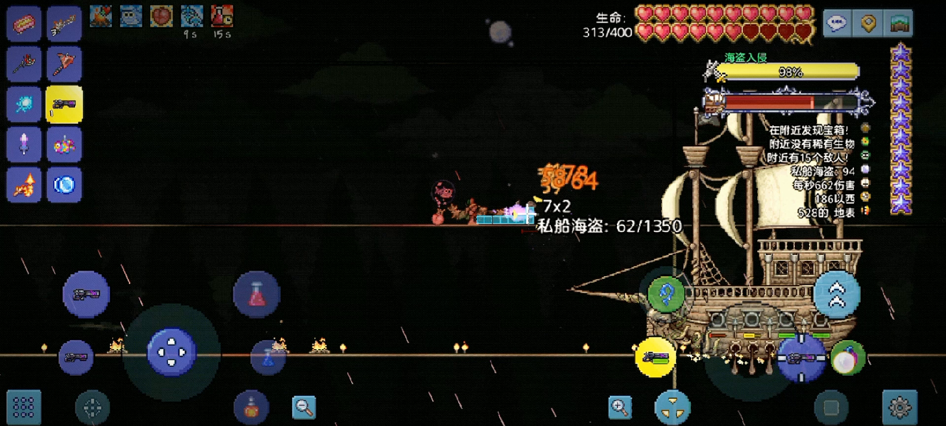 众所周知,海盗船是不可以穿墙的(除了诅咒),一直移动是不会被跑弹所攻击的,如视频所显示的哪样,做一道墙,四五个方块,然后右侧上,或者左侧上在放一个方块即可。 一个海盗打了五次海盗船吧,也刷出来了海盗船的坐骑🤭🤭🤭