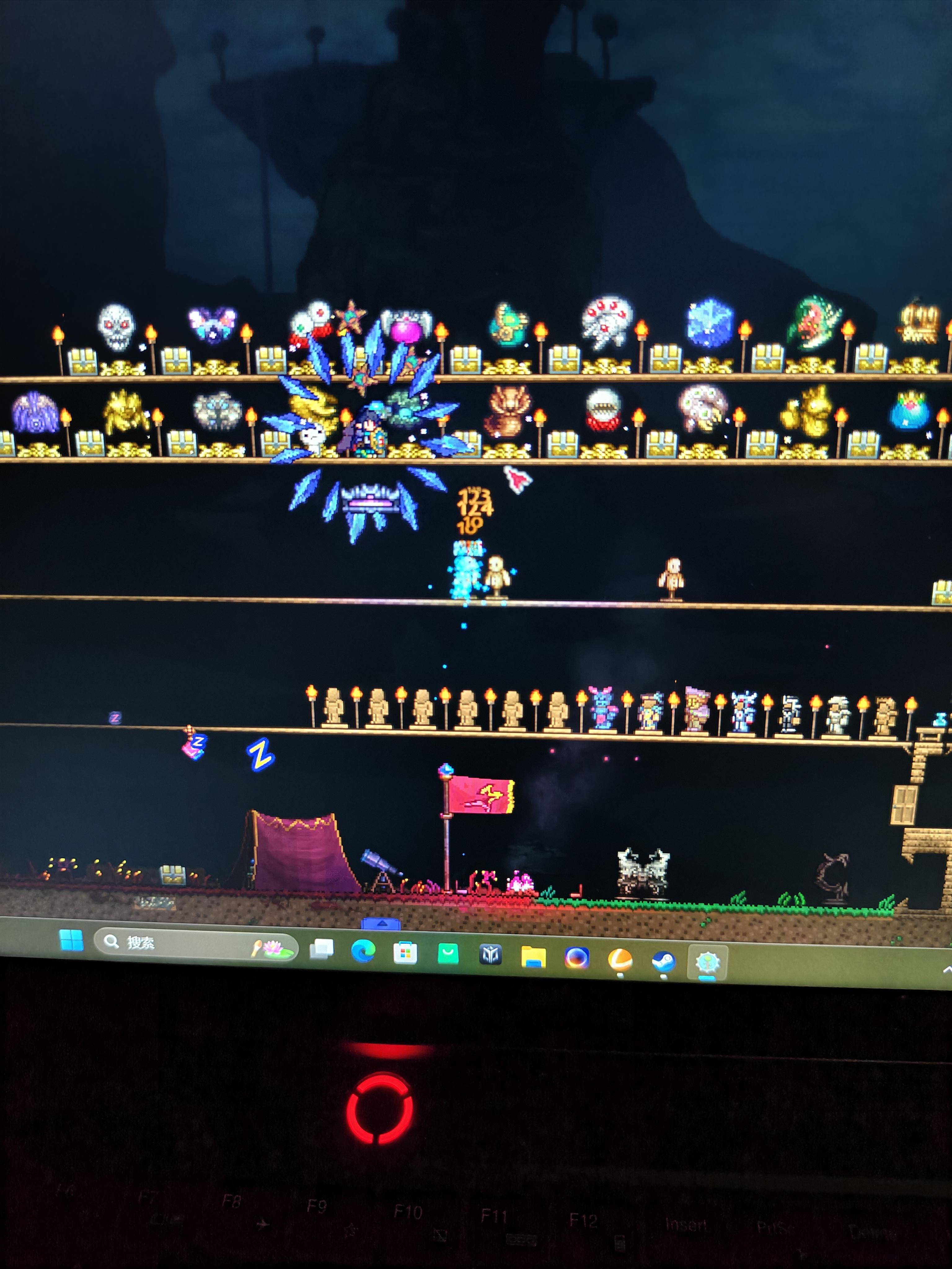 之前卡在史莱姆女皇一直没过,后面打酸雨拿到了毁灭者鱼,潜伏攻击可以跟踪,终于是打过了,然后发现双子魔眼好难,根本打不过,大佬提醒的用冰灵刃,确实好强啊这个武器,潜伏攻击带跟踪,而且伤害很高,也是顺利打过双子魔眼了,然后,我以为机械骷髅王是最难的,我就先去打幻光星蛾,第一次打我人傻了,真的难,弹幕多而且多动症,后面我打了十几次熟悉了走位才终于过了,因为灾厄的骷髅王是三只一起打,而且复仇也加了新的ai