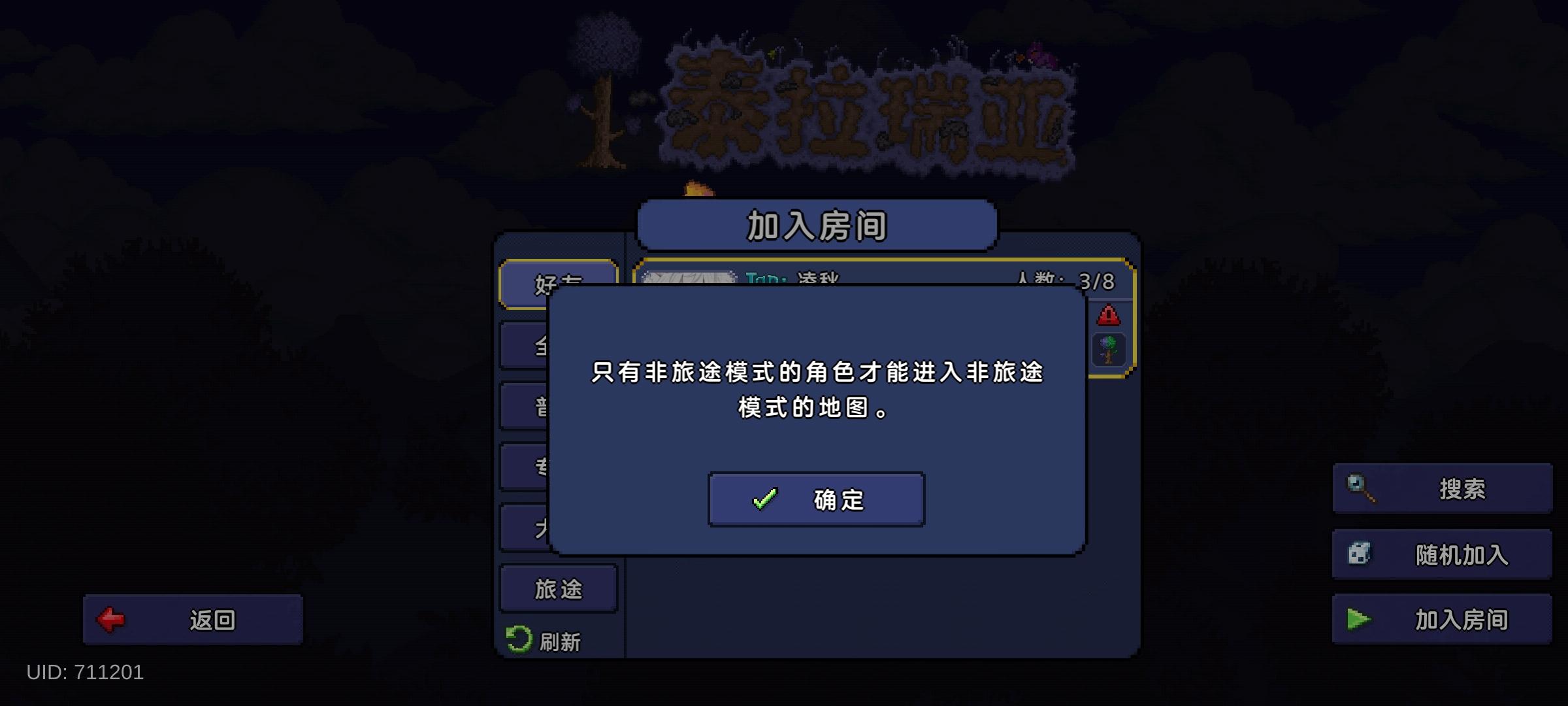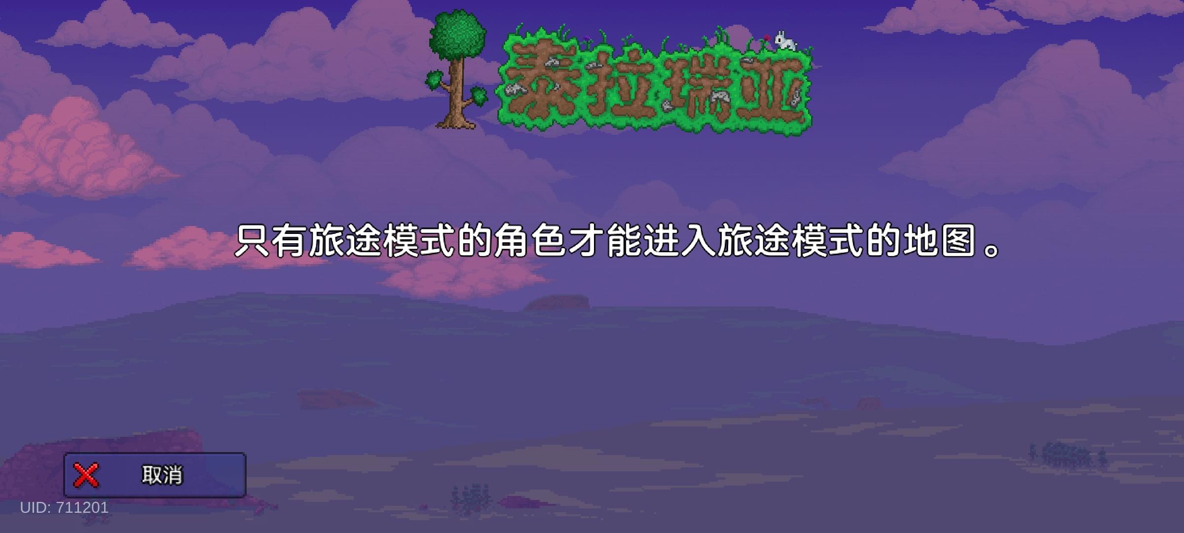 好友大师世界,用大师人物进不去,提示需要旅途模式,换旅途角色,提示需要非旅途角色,无敌了。#泰拉瑞亚更新