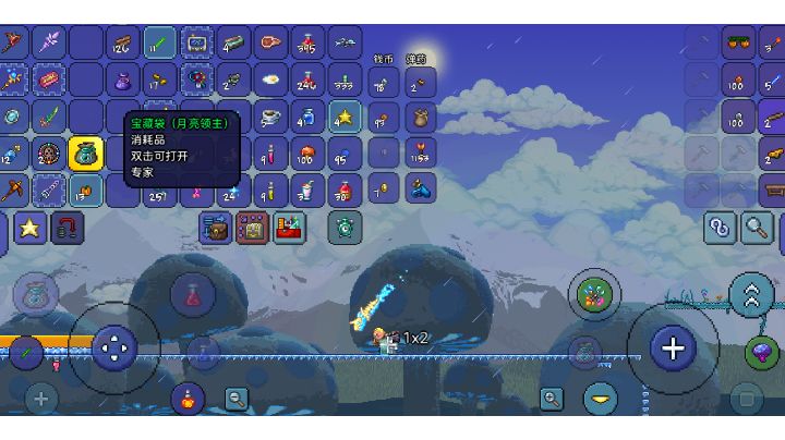 这版本战士变强了好多,一把100多攻击的。泰拉刃都能直接通关了。打的专家,蠕虫围巾。加冰盾,免伤43%,首次过月总用的是甲虫套,最高免伤是45%,增益用的是,加血的灯笼和火堆,然后喝一个回血药和加8防的药,最高防御差不多110,猪鲨,石巨人,花后随便刮死