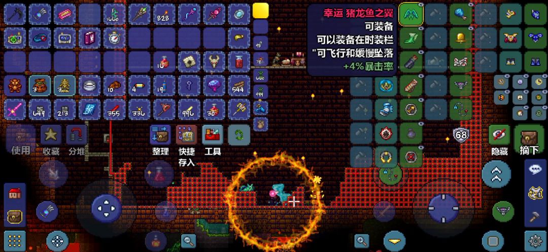 这波打了很久,钻了很多空子:boss前有狱炎箭,血量提升到200点增加容错率,带了几瓶一百血血瓶… 饰品:红气球 雏翼 赫尔墨斯鞋 沙暴瓶 这波饰品可以用克盾啦😆耶 装备:化石套 增加攻击