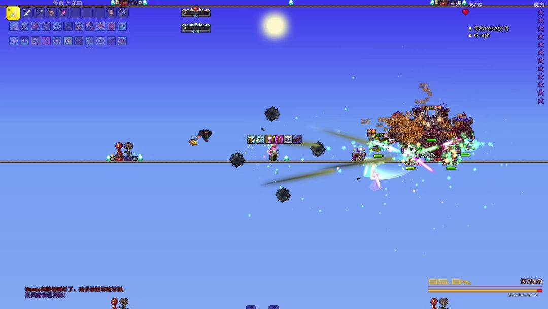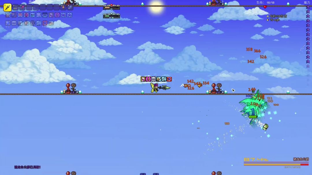 小技术力 主要还是背板占的多 boss技能前摇明显 保证大跳时在同一水平线就能躲掉前技能追来的弹幕 主要问题是泰拉射线打白金之星掉帧太严重 所以改了语音把缓帧开了