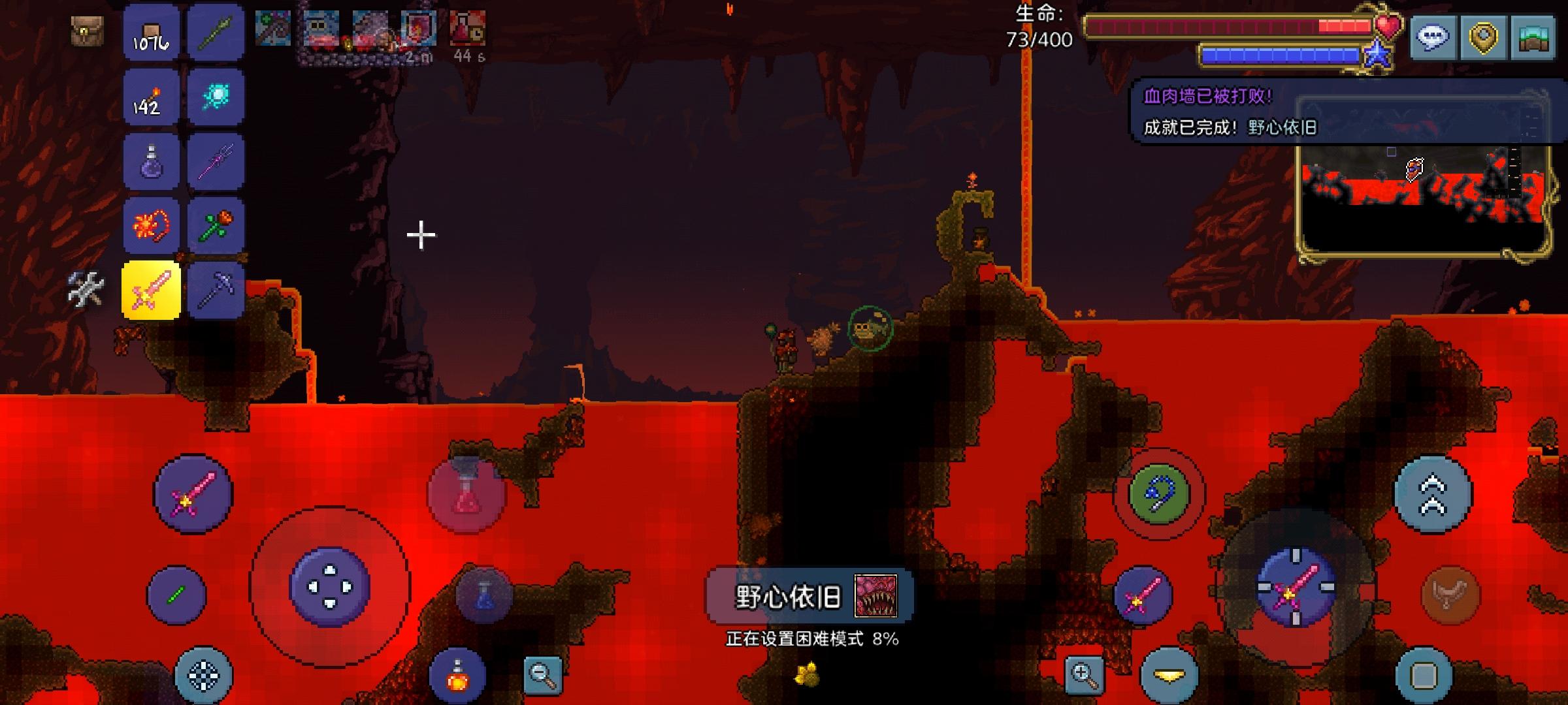 如题,我本来想来地狱挖掉狱石做点东西来着,然后打了个恶魔,它有娃娃,我想着试试扔岩浆会怎么样,这肉墙就出来了,可能是简单模式,我这个打的还是可以的,基本上利用地形躲一下激光就过了,然后就是,这个设置困难模式,会影响到什么啊,小怪和boss的血,伤害和防御等等嘛