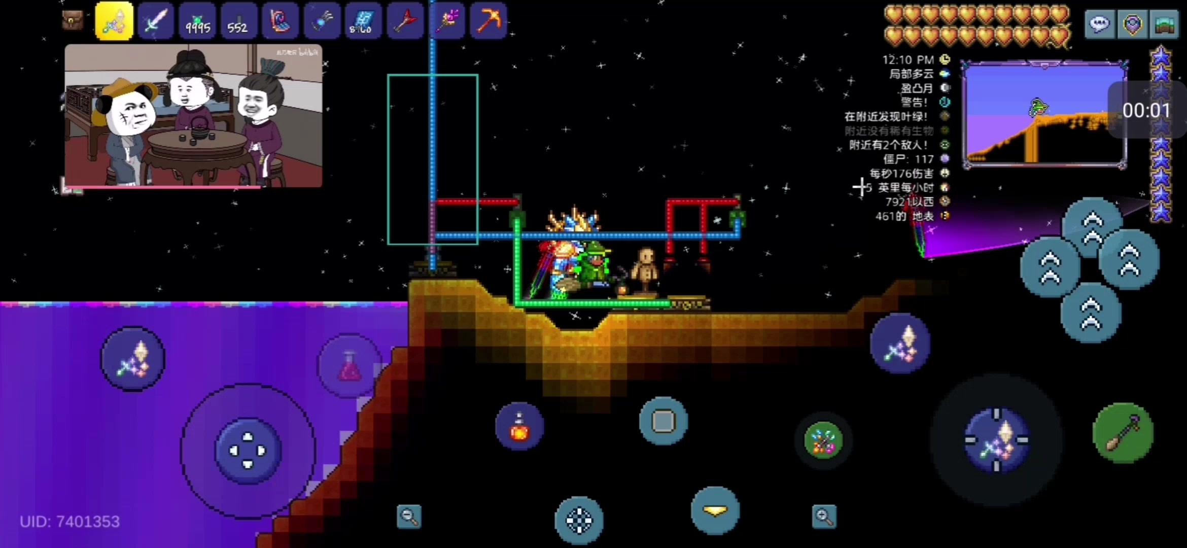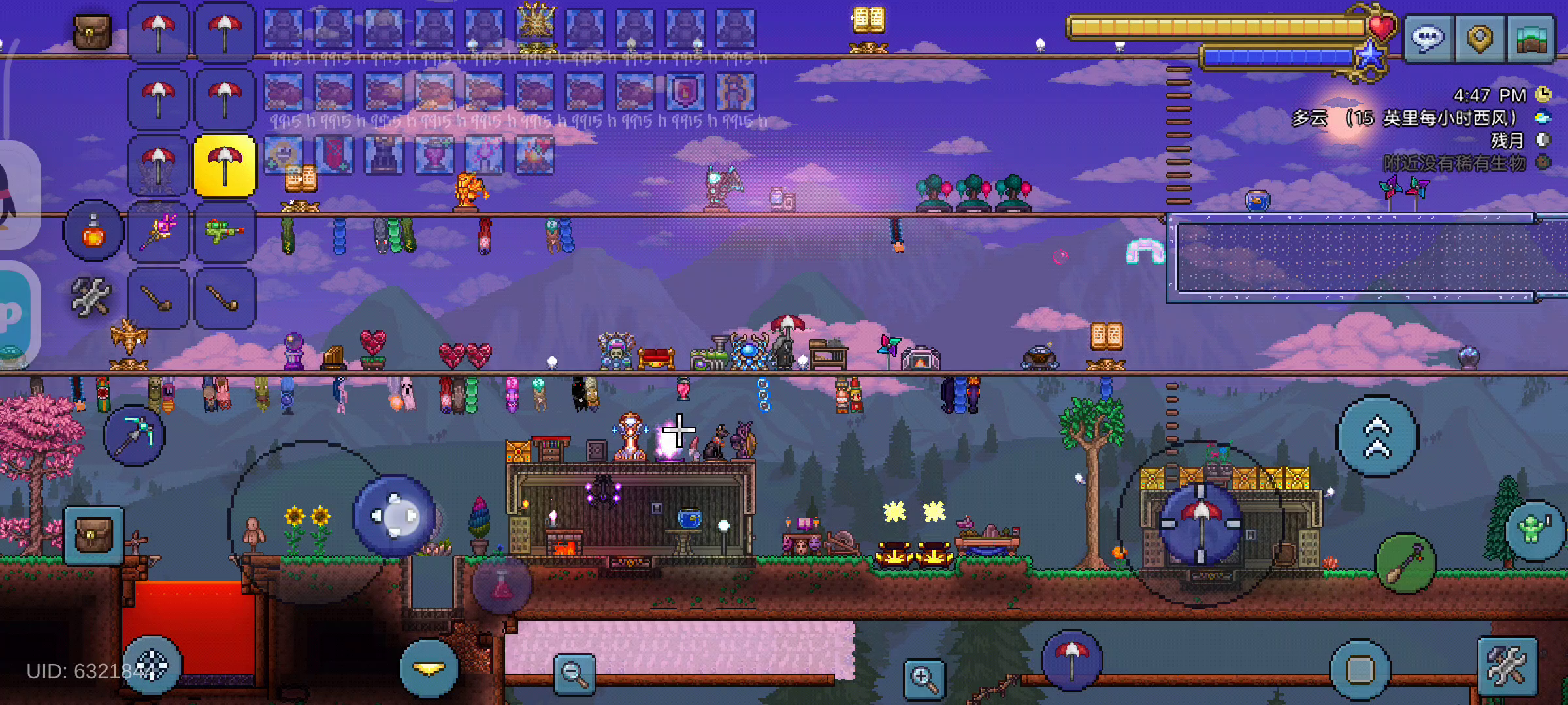有大佬今天刚发布了一个启动器,不同于老版tmod生搬硬套移植过来的,新的由于是启动器优化非常好,类似mc启动器那种,是直接把PC版泰拉和tmod本体导入运行的,骁龙865就能玩。还可以自定键位,可以类1.4,不像那个老移植板用1.2的操作方式那么反人类,我这手机不敢带众神之怒,因为有些差的电脑带众神都卡。这优化真的比那个远古移植版好太多了,我刷了6只星流三王都不卡。要换那个远古版本,我刷出来直接卡