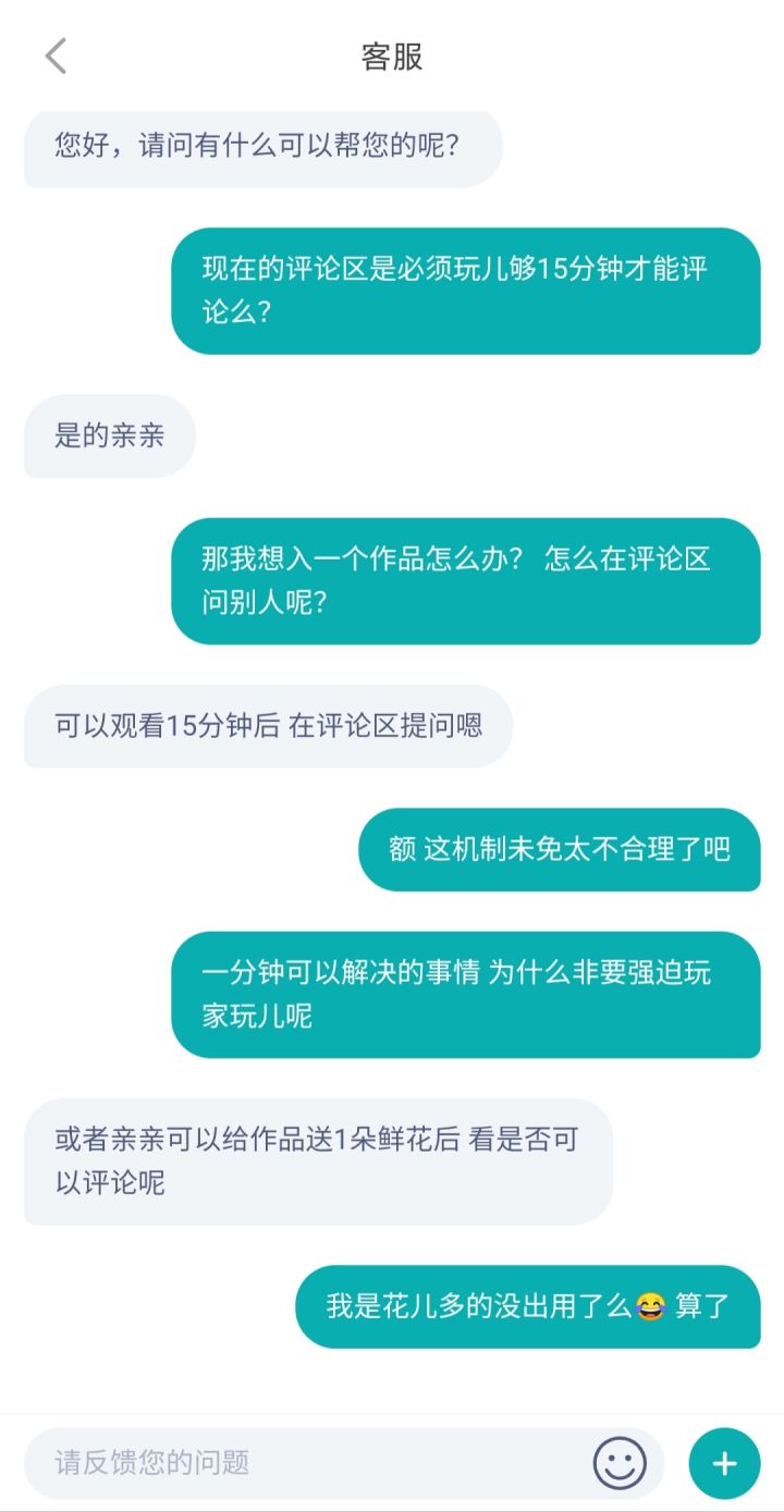 新入坑橙的玩家 理性充花 作为一个五年以上的老玩家 累了 新出来的评论机制真的太狗了 新游戏玩儿十五分钟才能评论 那请问我新入一个游戏我不能在评论区先问问老玩家如何吗?非要花费十五分钟的时间? 然后还给我说你送一朵花试试 你是脑子有那个什么病么???