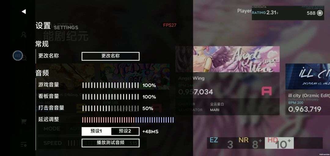 我之前用的是+503MS,但现在范围是±320MS,曲子和谱面对都对不上——用的是蓝牙耳机,延迟有那么点大。所以能不能把范围改回去,我现在看着一堆新歌打不了难受死了……