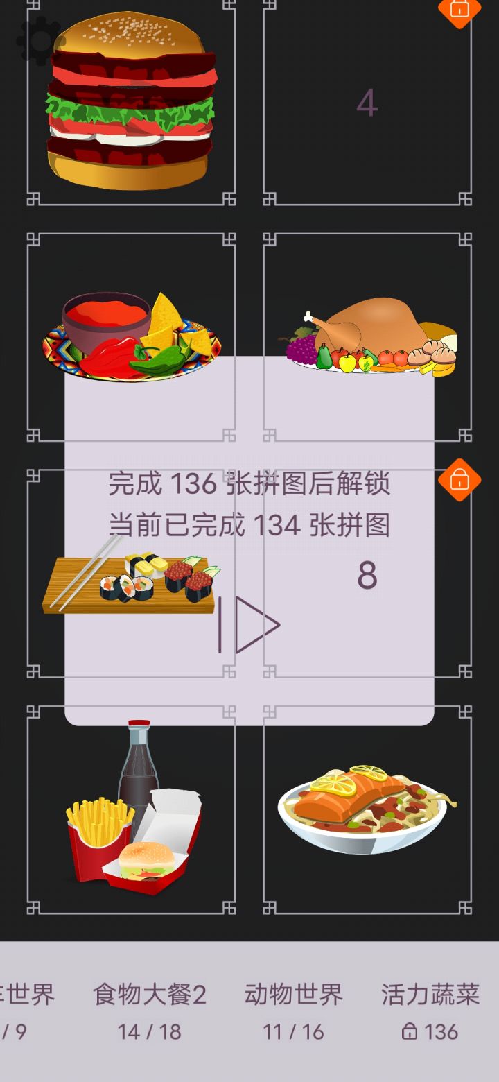 bug当你两根手指一前一后,点在未解锁模块和已完成拼图上会出现这种情况,已验证多次
