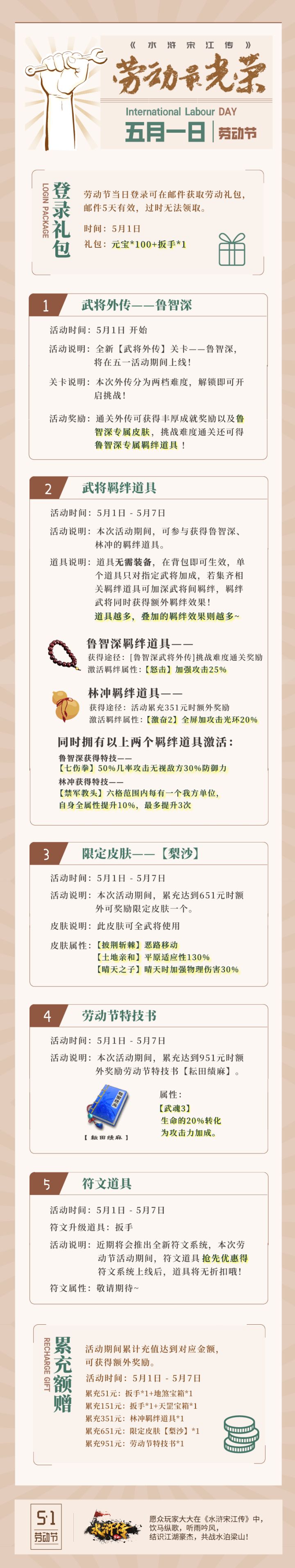 【5月劳动节活动】丨全新武将外传、超强羁绊道具、皮肤、特技…… 超多福利只在五一!