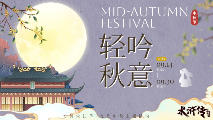 🐇亲爱的好汉们:🌕明月皎洁,秋水共长天一色,九月中秋悄然而至。轻吟知秋意,江湖添雅韵。梁山聚义厅,英雄豪杰同欢庆,共度这团圆美好时光。中秋之夜,让我们在《水浒宋江传》里,携手漫步月光下,共赏那轮圆满之月。【轻吟知秋意,共赏明月,9月14日《水浒宋江传》与你相约中秋】一、游戏活动🔶🔶🔶【中秋 · 活动时间】🎈2024年9月14日 - 2024年9月30日【中秋 · 活动详情】 🎈█