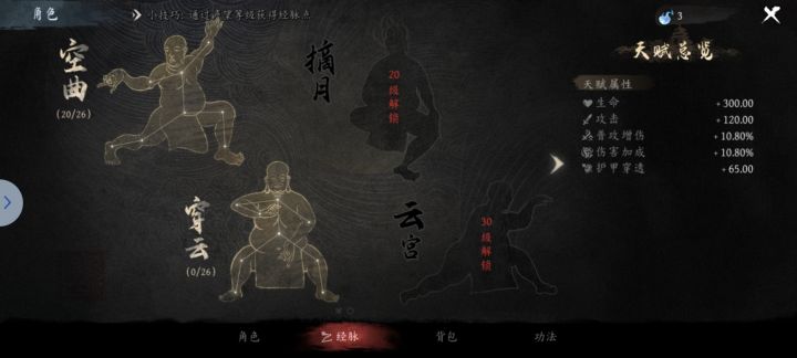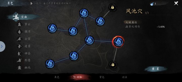 三阶里的增强25经脉已经完成了,现在是18级,再加上邮件送的10点,但我现在把全部经脉点重置也不够25点啊,最离谱的是风池穴点满了,下面那个竟然点不了,唉,bug真多啊