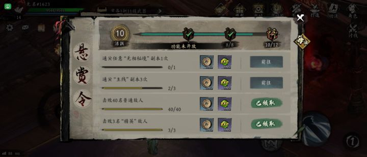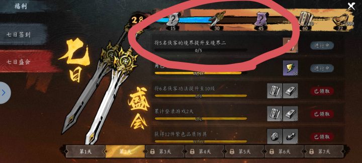 1. 第二天的任务,要求五名侠客境界二,我一堆蓝色侠客满了,依然完不成2. 主线任务,要求经脉增强25次,但是不完成任务拿不到天赋点,没法增强